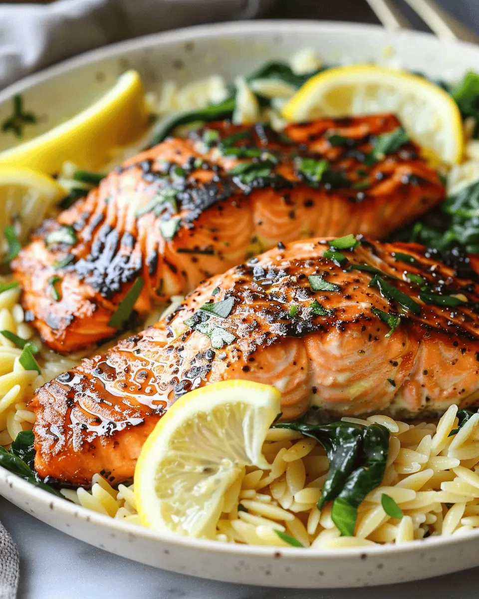 30-Minute Seared Salmon: Easy Lemon Orzo Delight for Dinner