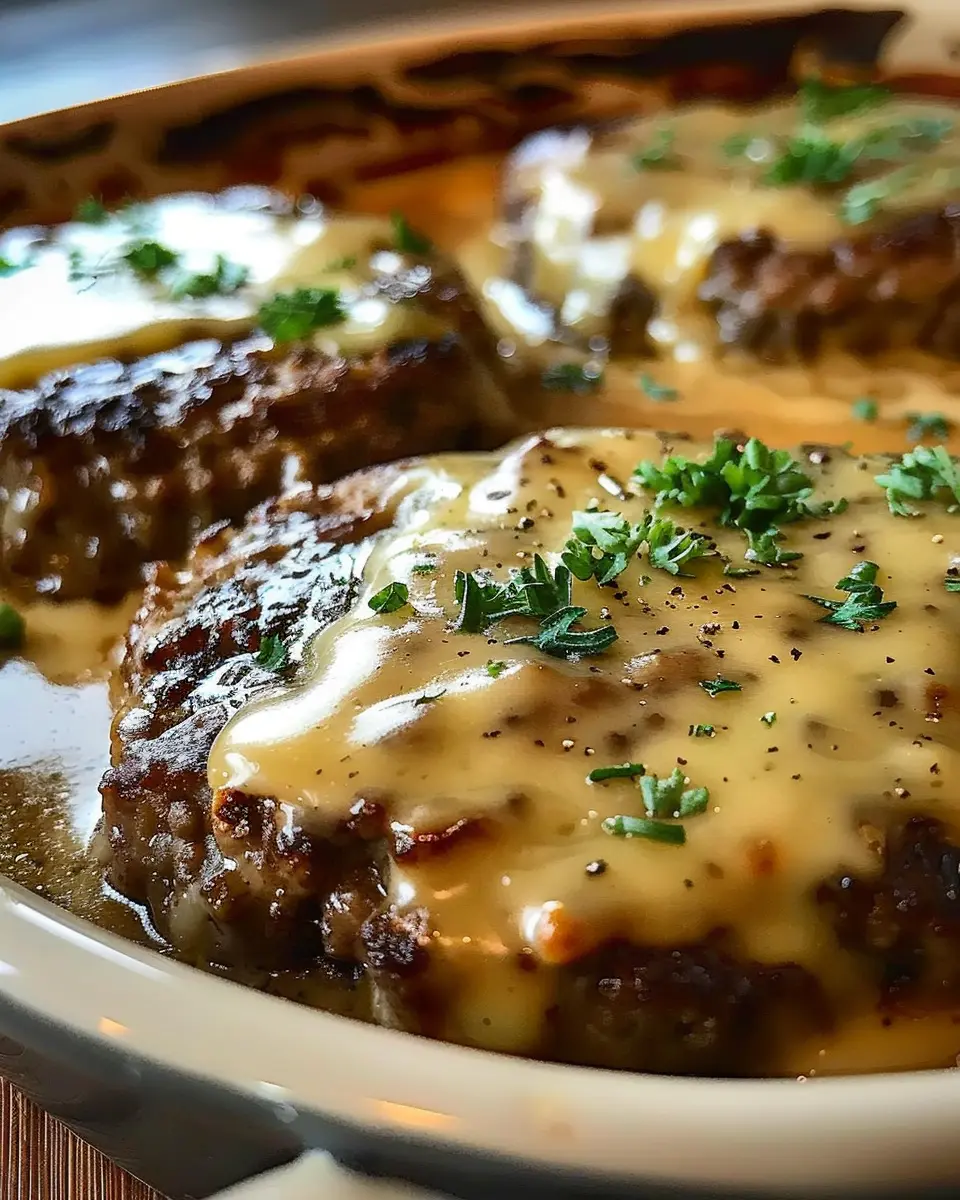 The rich, creamy gravy that accompanies the Amish Hamburger Steak Bake is what elevates this dish to the next level.