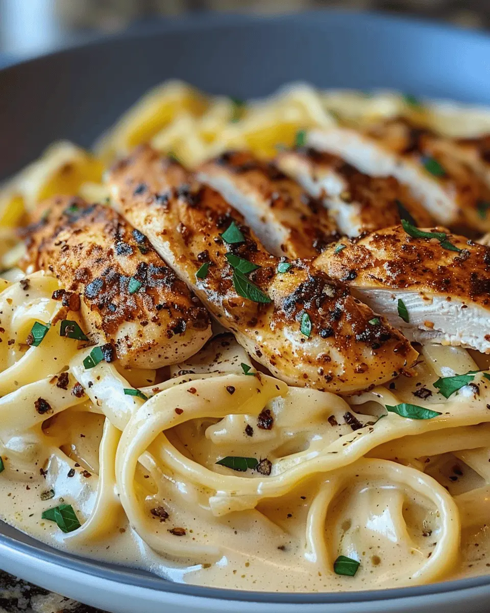 Indulge in the rich flavors of Blackened Cajun Chicken Alfredo, a dish that combines the spiciness of Cajun seasoning with creamy pasta.