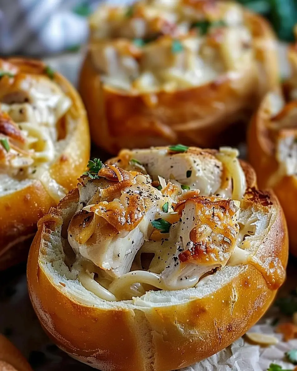 Chicken Alfredo Garlic Bread Bowls: Indulgent Comfort Made Easy