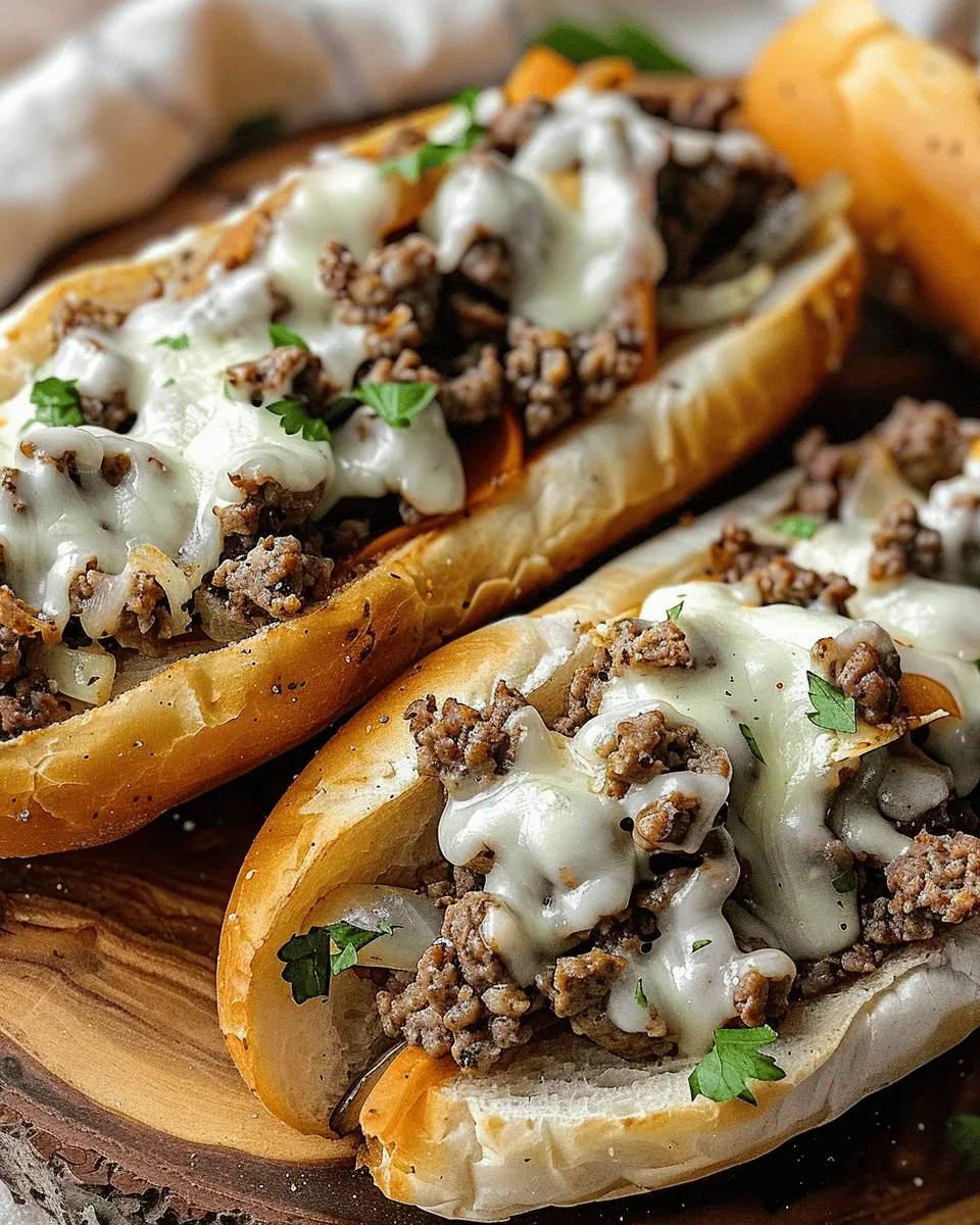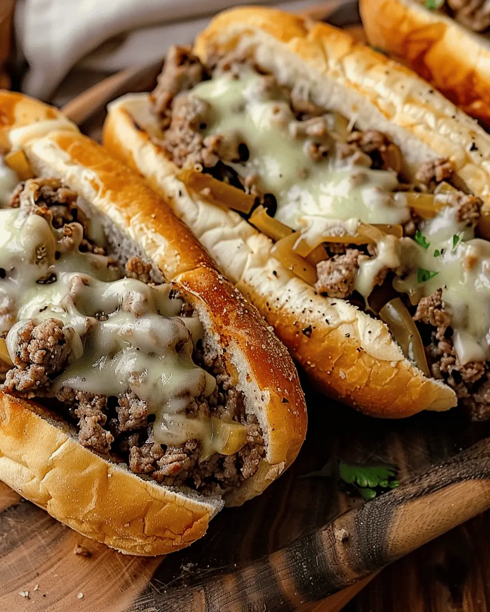 In summary, Ground Beef Philly Cheesesteaks are a game-changer for busy weeknight dinners or laid-back weekend gatherings. With their savory combination of seasoned beef, melted cheese, and sautéed vegetables, they promise a burst of flavor in every bite. This recipe not only simplifies the classic dish, but it also allows for versatility—feel free to customize it with your favorite toppings or sides.