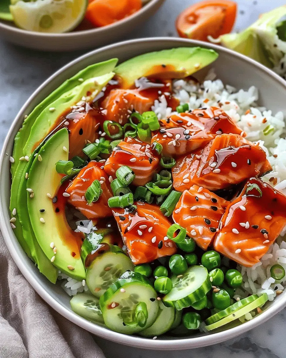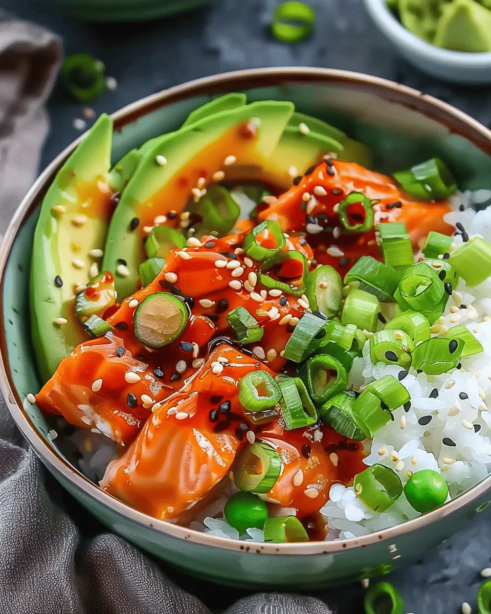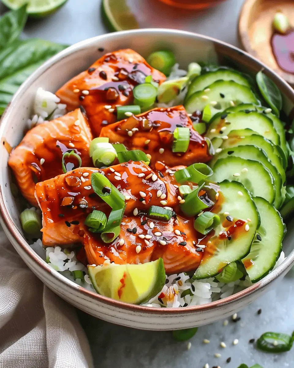 These Honey Sriracha Salmon Bowls are a delightful blend of sweet and spicy flavors, perfect for a quick and satisfying meal.
