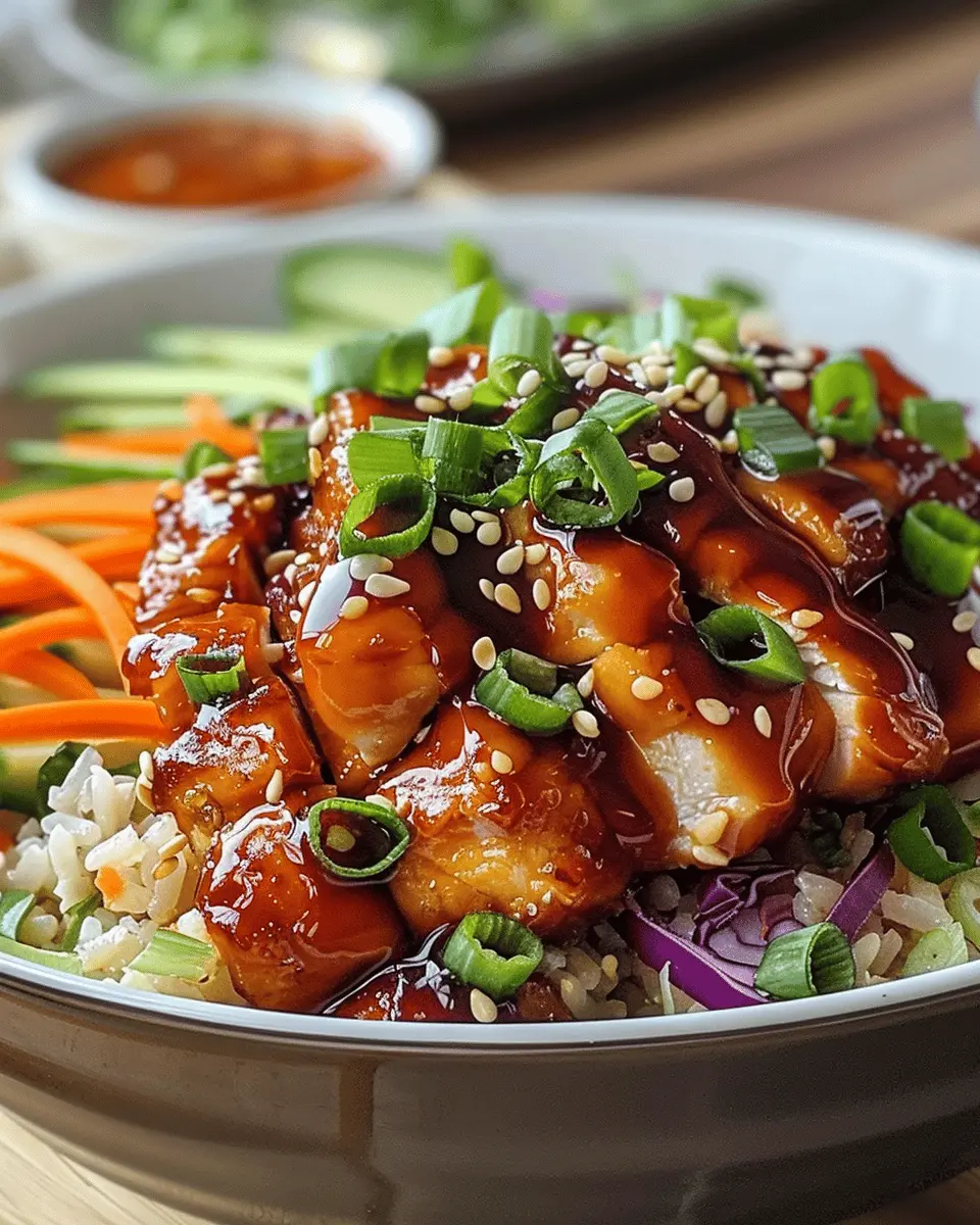 In summary, the hot honey chicken bowl is not just a dish; it’s a culinary adventure that combines flavor with comfort. With juicy chicken, crispy veggies, and that sweet heat from hot honey, it’s perfect for a quick weeknight dinner or a casual gathering with friends.