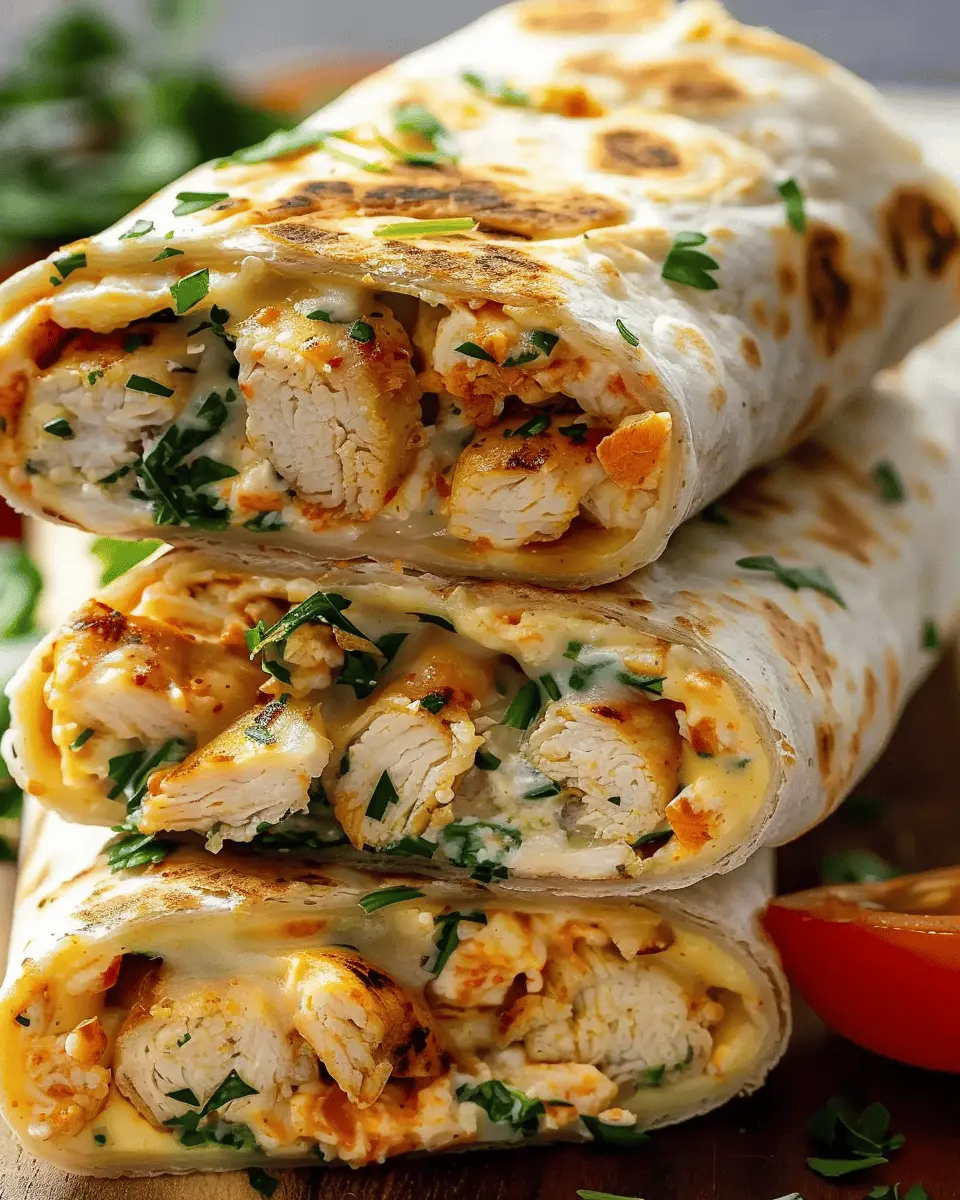 PrintOoey-Gooey Cheesy Garlic Chicken Wraps You’ll Love to Devour