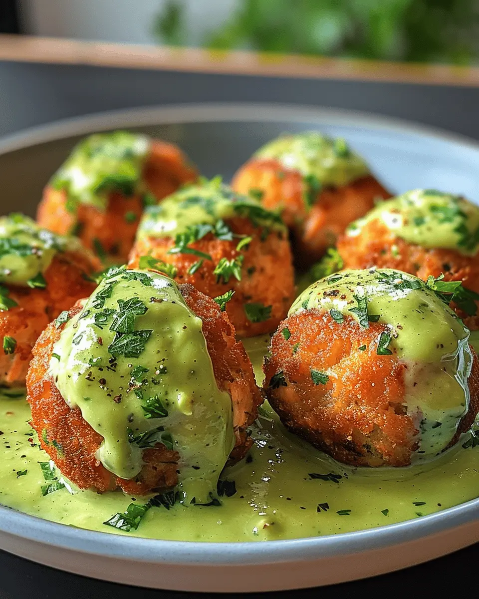 Introduction to Salmon Balls with Creamy Avocado Sauce