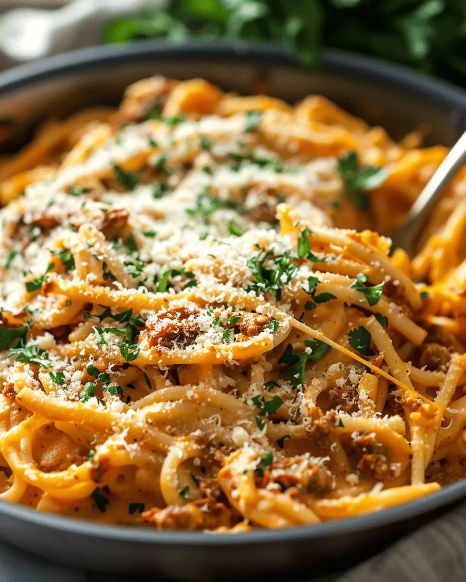 Right before serving, add in a generous splash of heavy cream or a dairy-free alternative if you’re looking for a lighter option. Stir it in until the sauce is luxuriously creamy and beautifully blended.